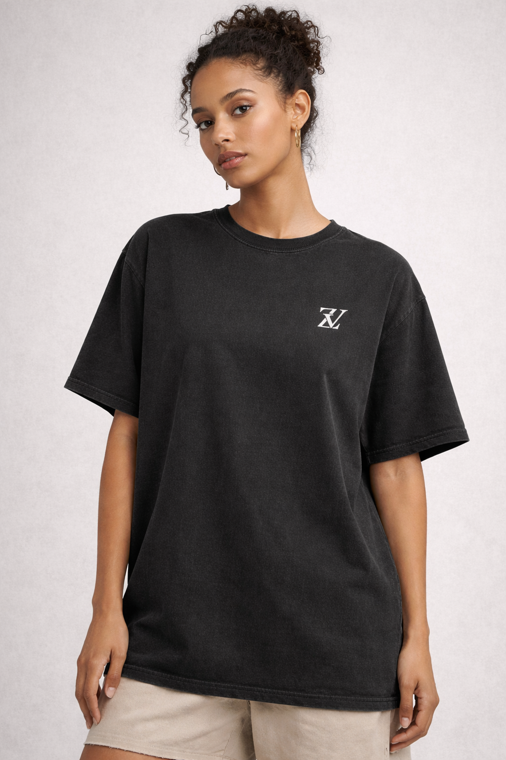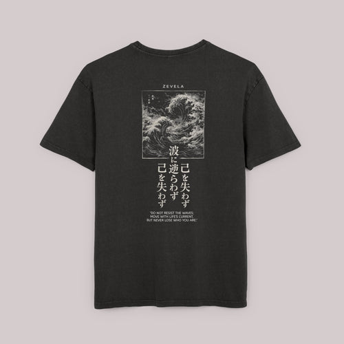 Japanese Wave Meaning & Motivation Tee | Back Print Acid Wash Black